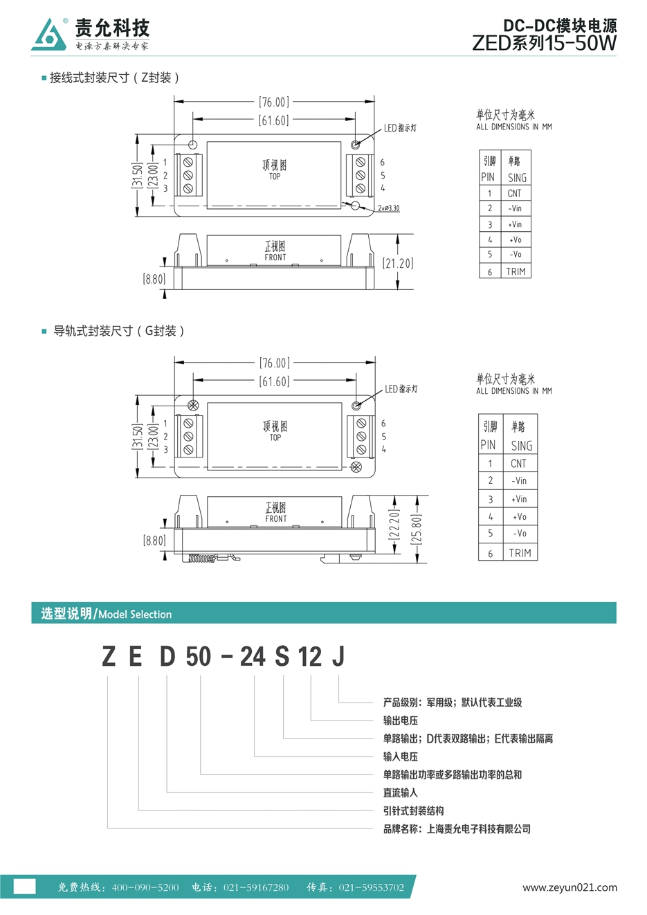 输入:9-18、9-36、18-36、18-75、36-72、40-160VDC 输出:3.3~110VDC 尺寸:50.8×40.6×14mm;50.8×50....
